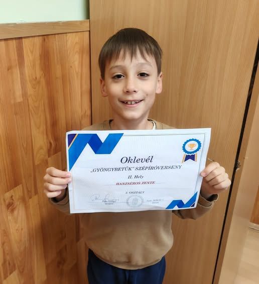 Megérkezett a februári, Győrben rendezett "Gyöngybetűk" Szépíró Verseny eredménye. Nagy örömünkre Hanzséros Zente másodikas tanulónk a II. helyet szerezte meg.
