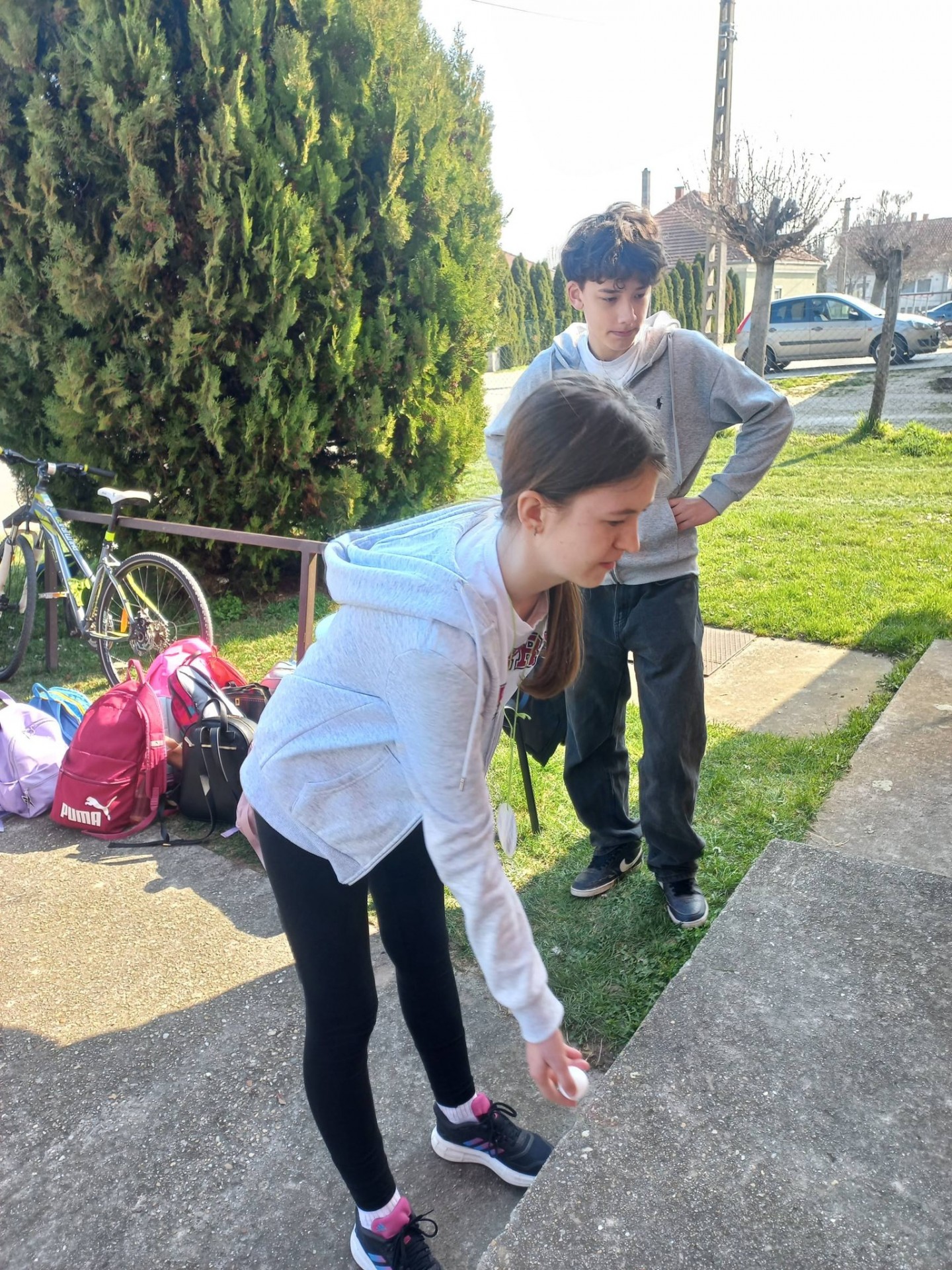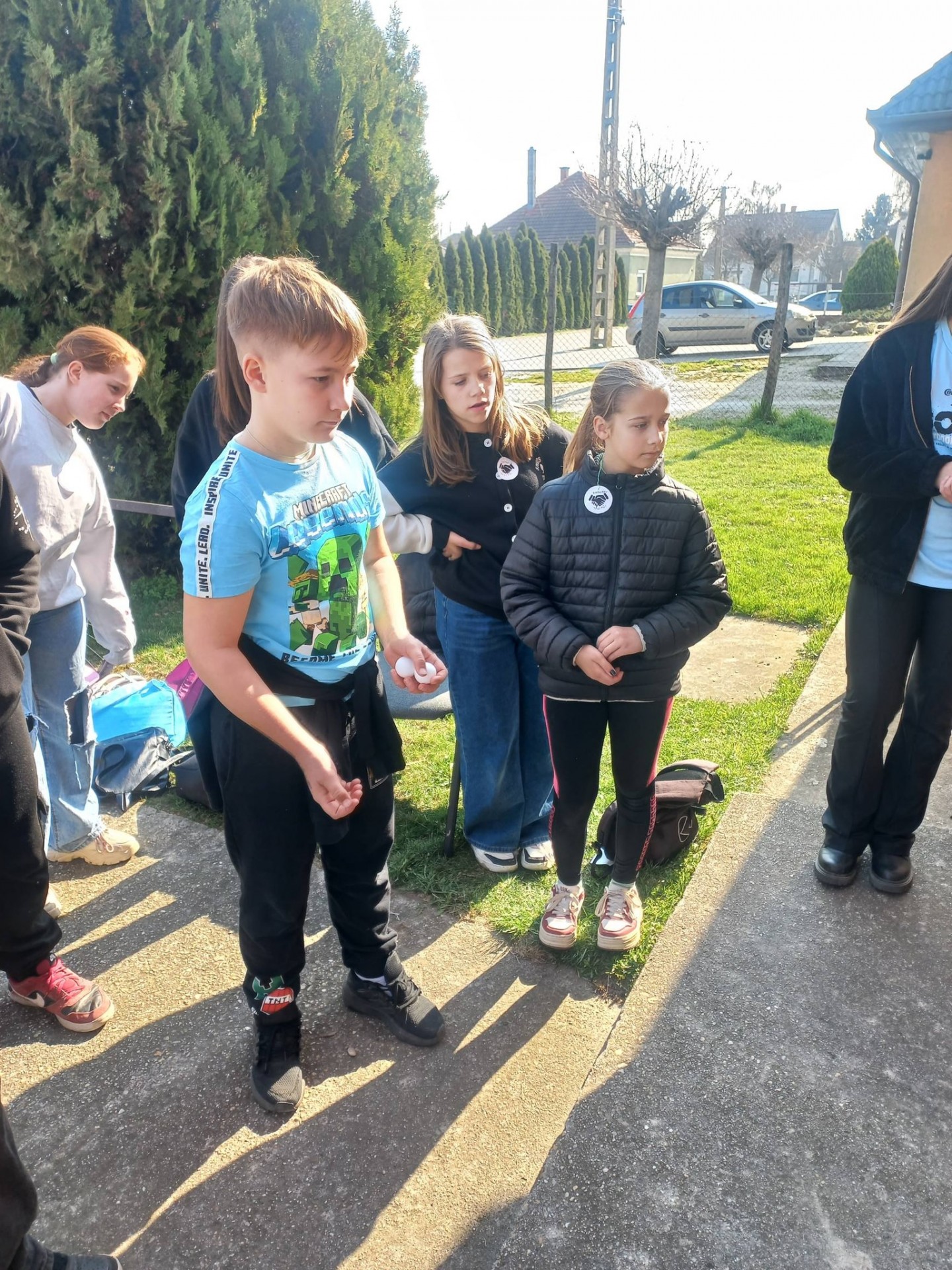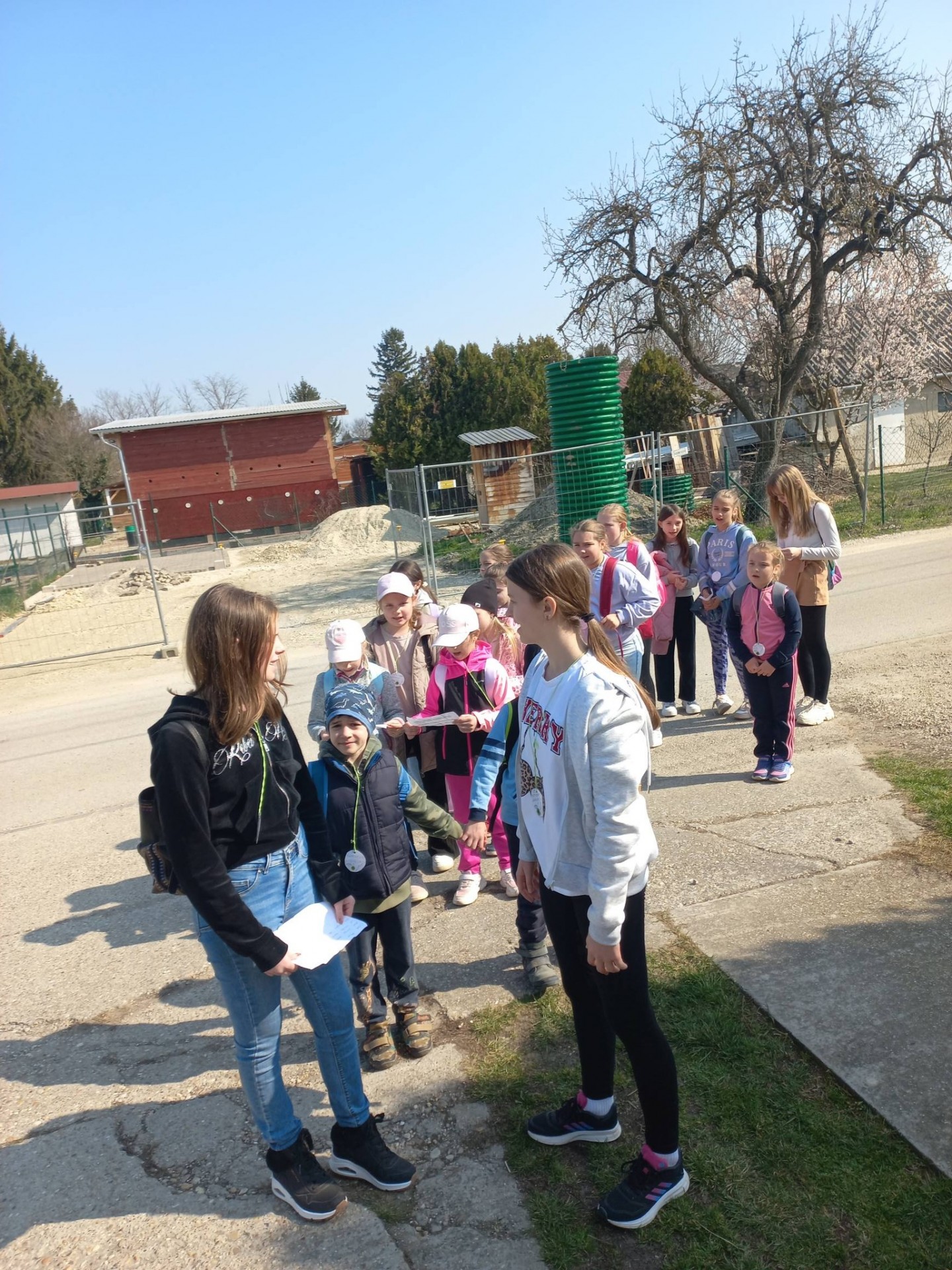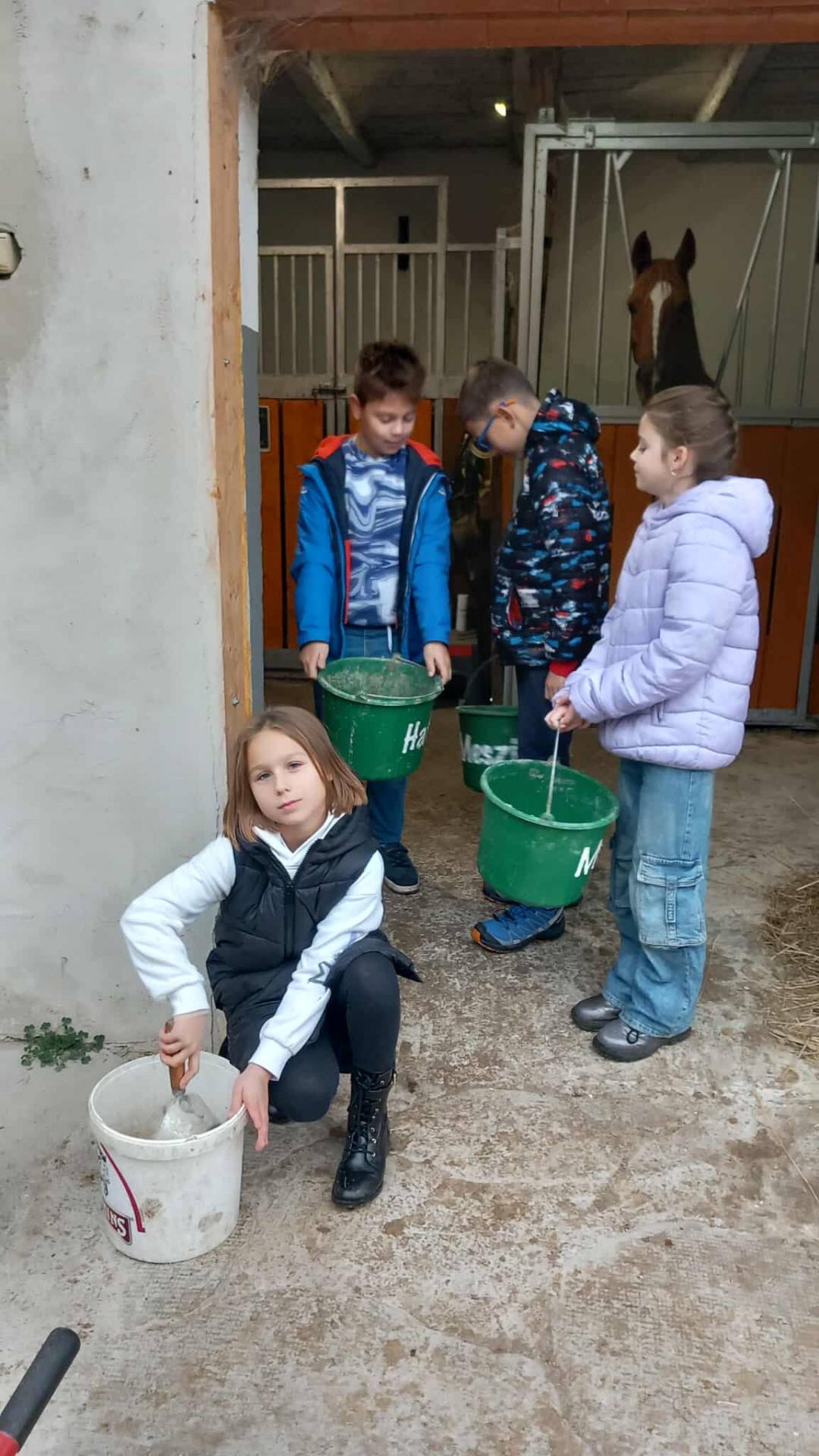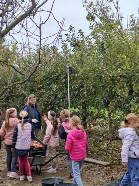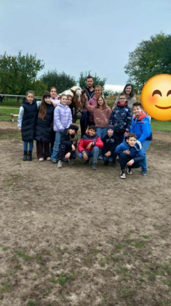 A 4. osztályos tanulók először a Morty Kertbe látogattak el, ahol megnézhették a nyuszit, kecskét, a tyúkokat, s a lovakat. Szakály Lili vezetésével betekintést nyerhettek a lovak életmódjába, részt vehettek gondozásukban, nagy örömmel megetették őket. Mindenki lovagolhatott egy kicsit, s a traktorral való közlekedést is kipróbálhatták.