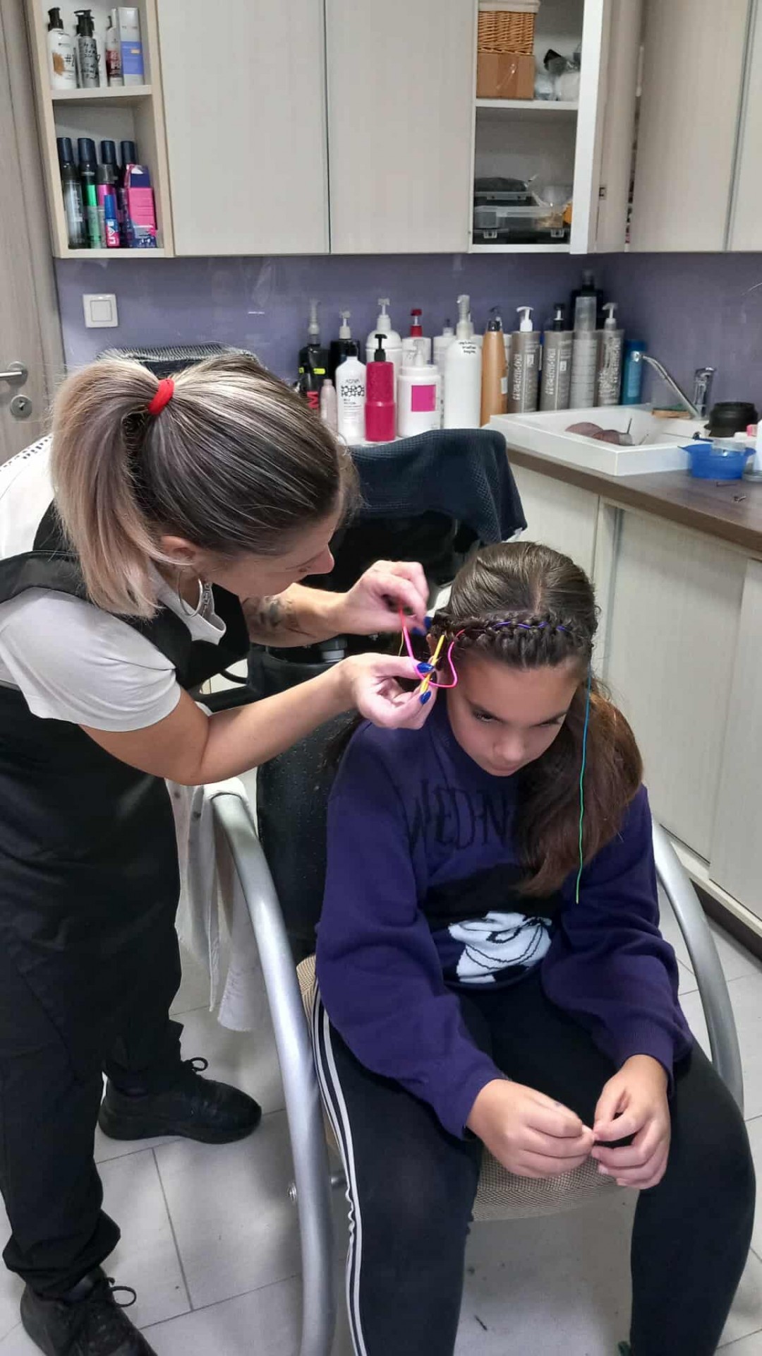 Klaudia minden gyereknek kedveskedett, díszes és színes frizurák készültek.