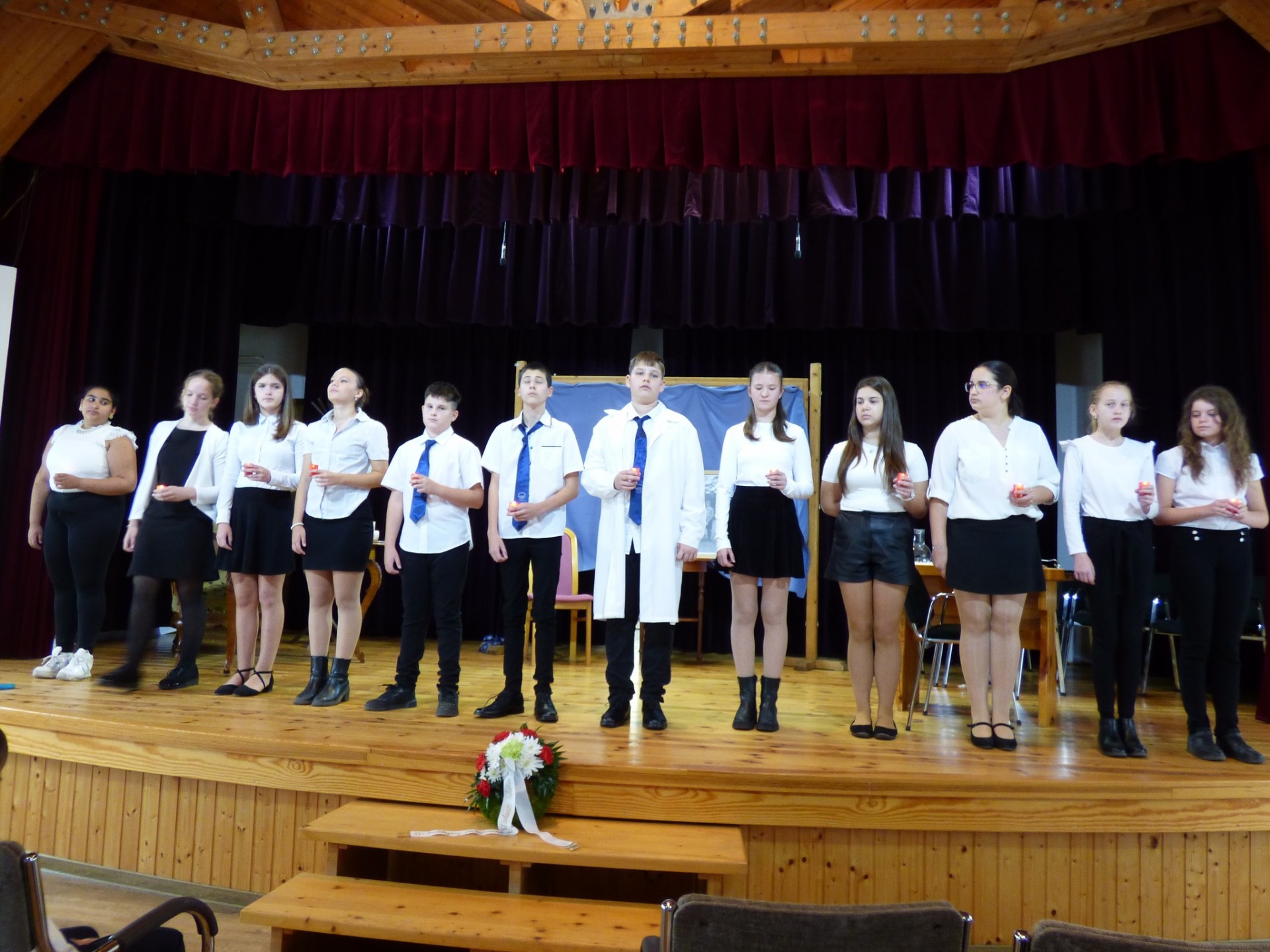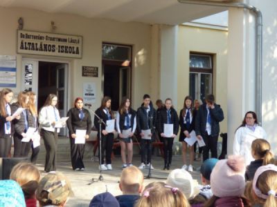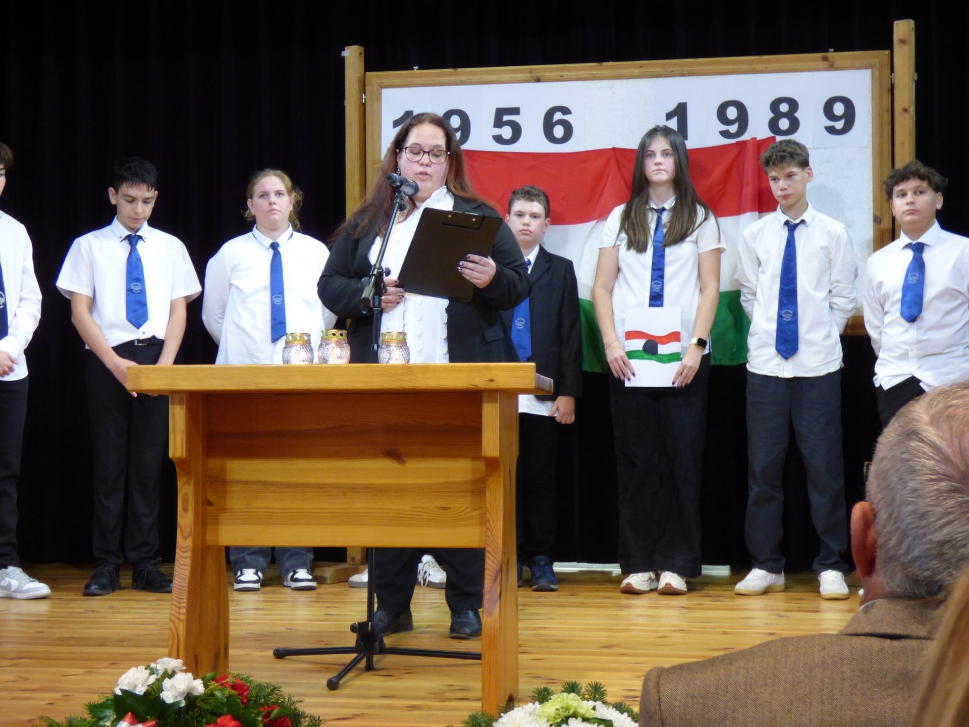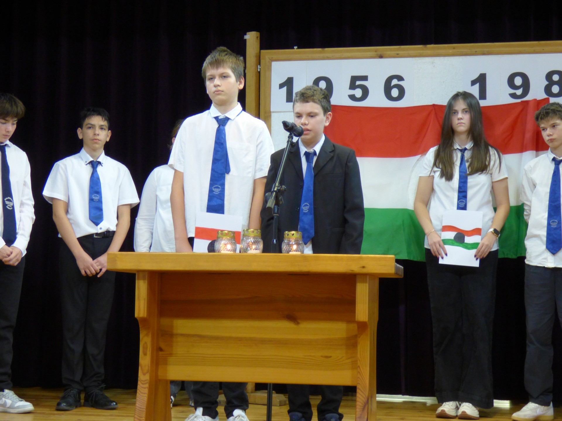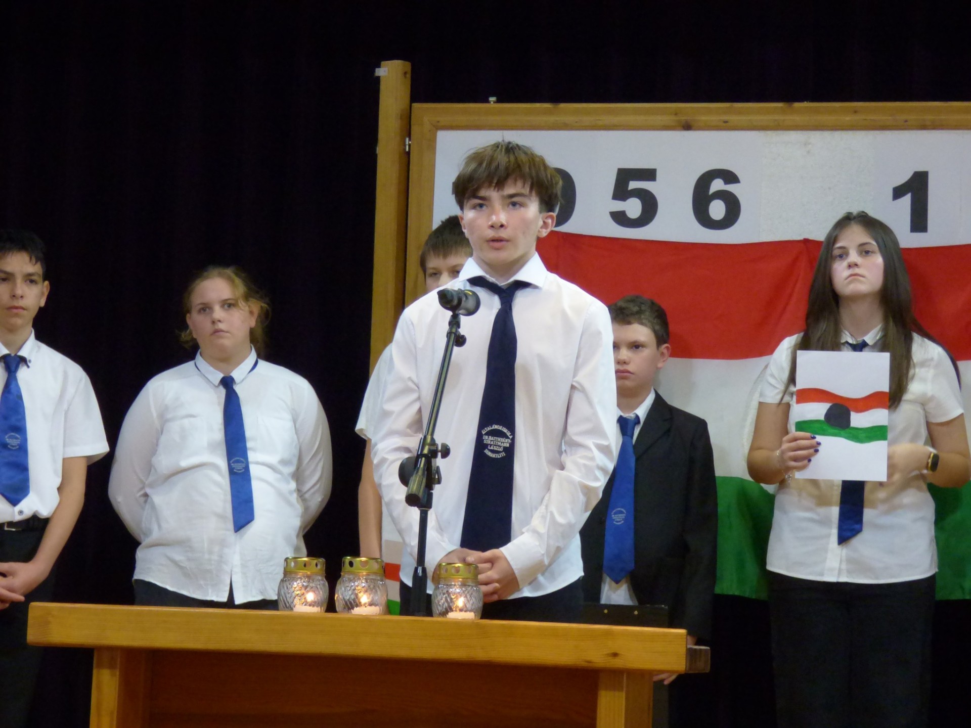 Az '56-os forradalom és szabadságharc hőseire emlékeztünk október 22-én délután. Megemlékezésünkön a nyolcadik osztály műsorát láttuk, akiket Mikus Sándorné készített fel. Munkájukat Arany Eszter és az énekkar segítette.