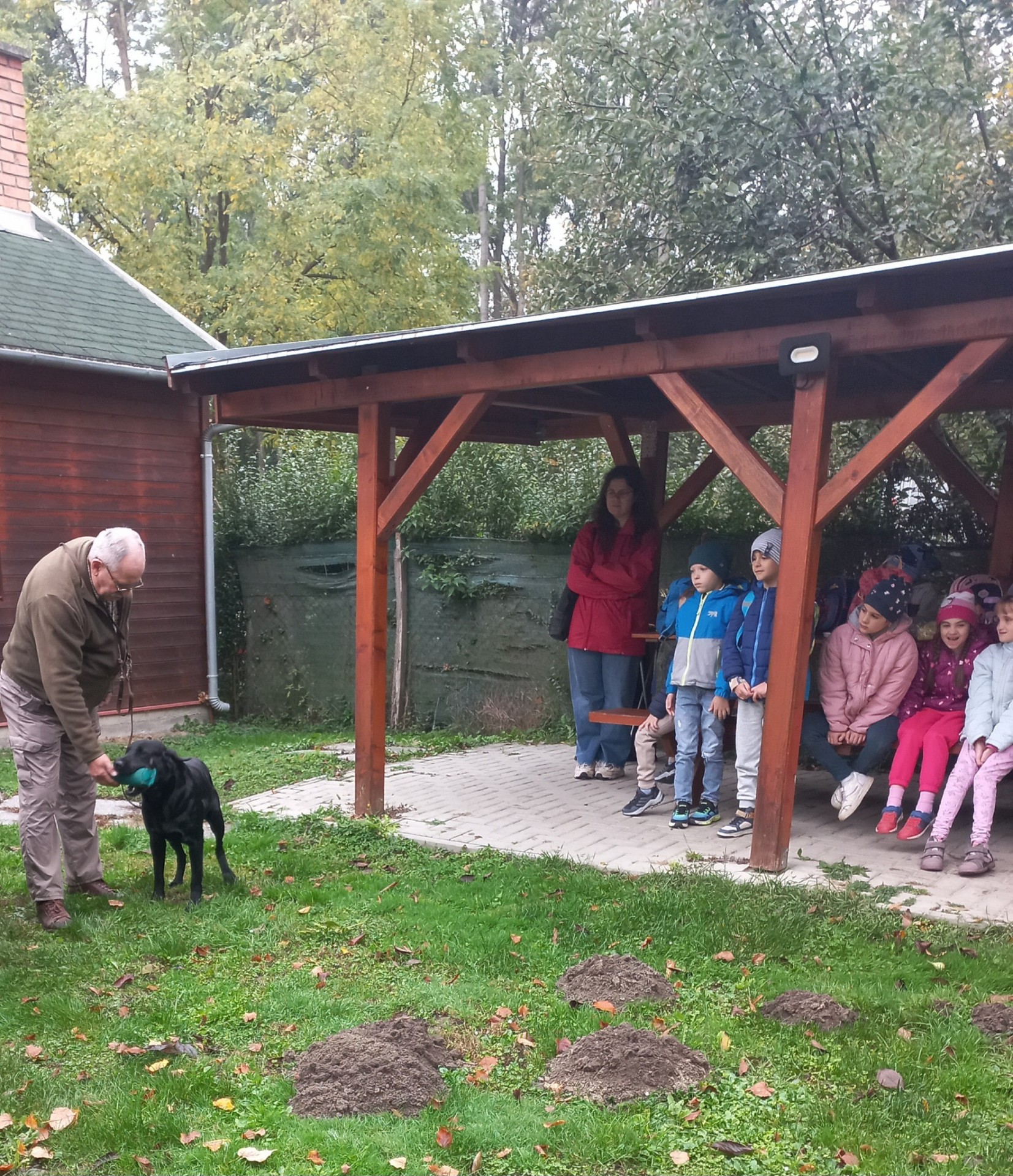 Az előbbiben megismerkedhettek a vadászok sokrétű munkájával, majd megnézhették, hogyan dolgozik egy vadászkutya munka közben. A második állomasunk a lovardában volt, itt a lovasok munkáját figyelhettük meg.