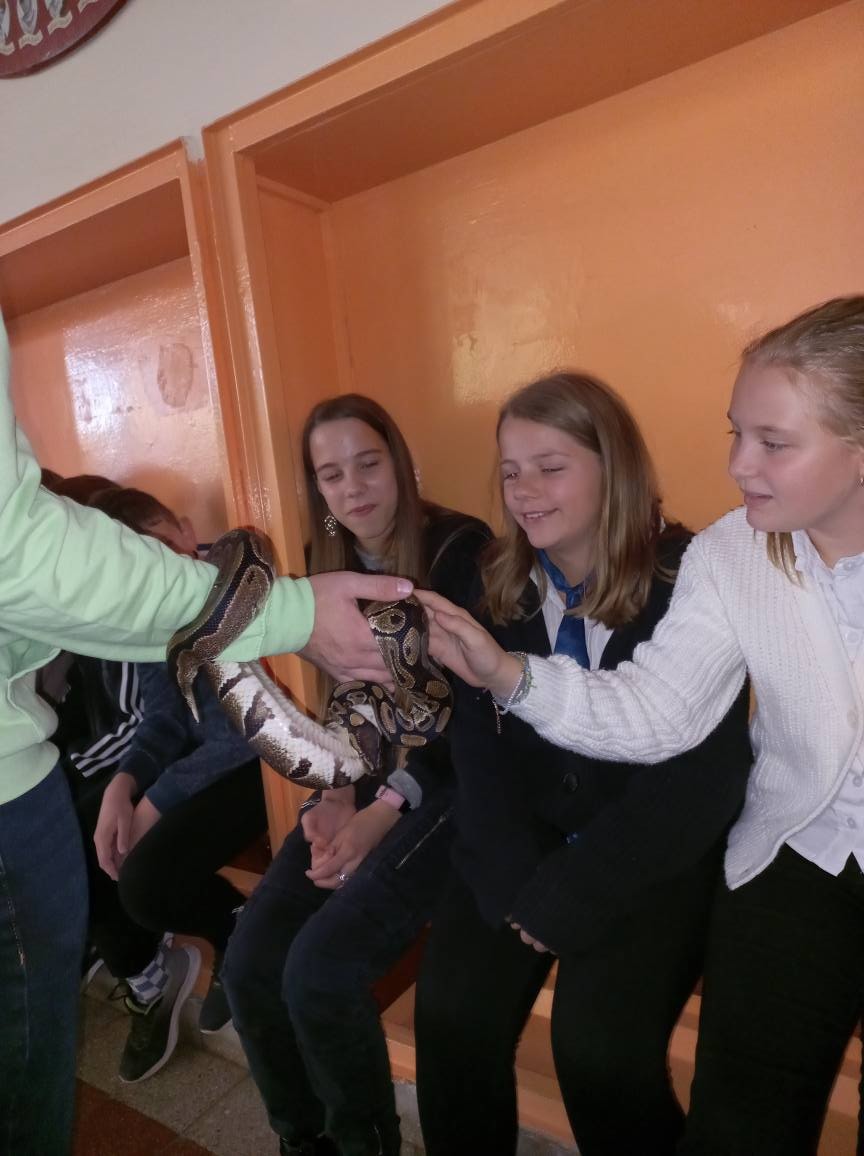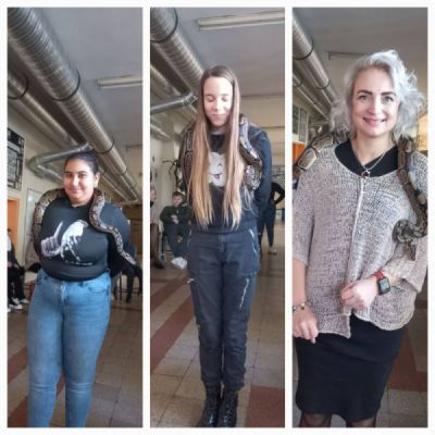 SuliZoo-ban jártunk ma az óvári Kossuth gimiben. Liziczai Márk tanár úr segítségével megismerkedhettünk az ott élő, diákok gondzásában álló állatokkal. Láthattunk tengeri akváriumban úszkáló színes, vidám halakat. Etettünk teknőst, ráját, simogattunk szakállas agámát, gekkót, és tengeri malacot. Megtanultuk, hogyan kell biztonságosan kígyót fogni, sőt, a bátrabbak a nyakuk köré vehettek egy királypitont is.