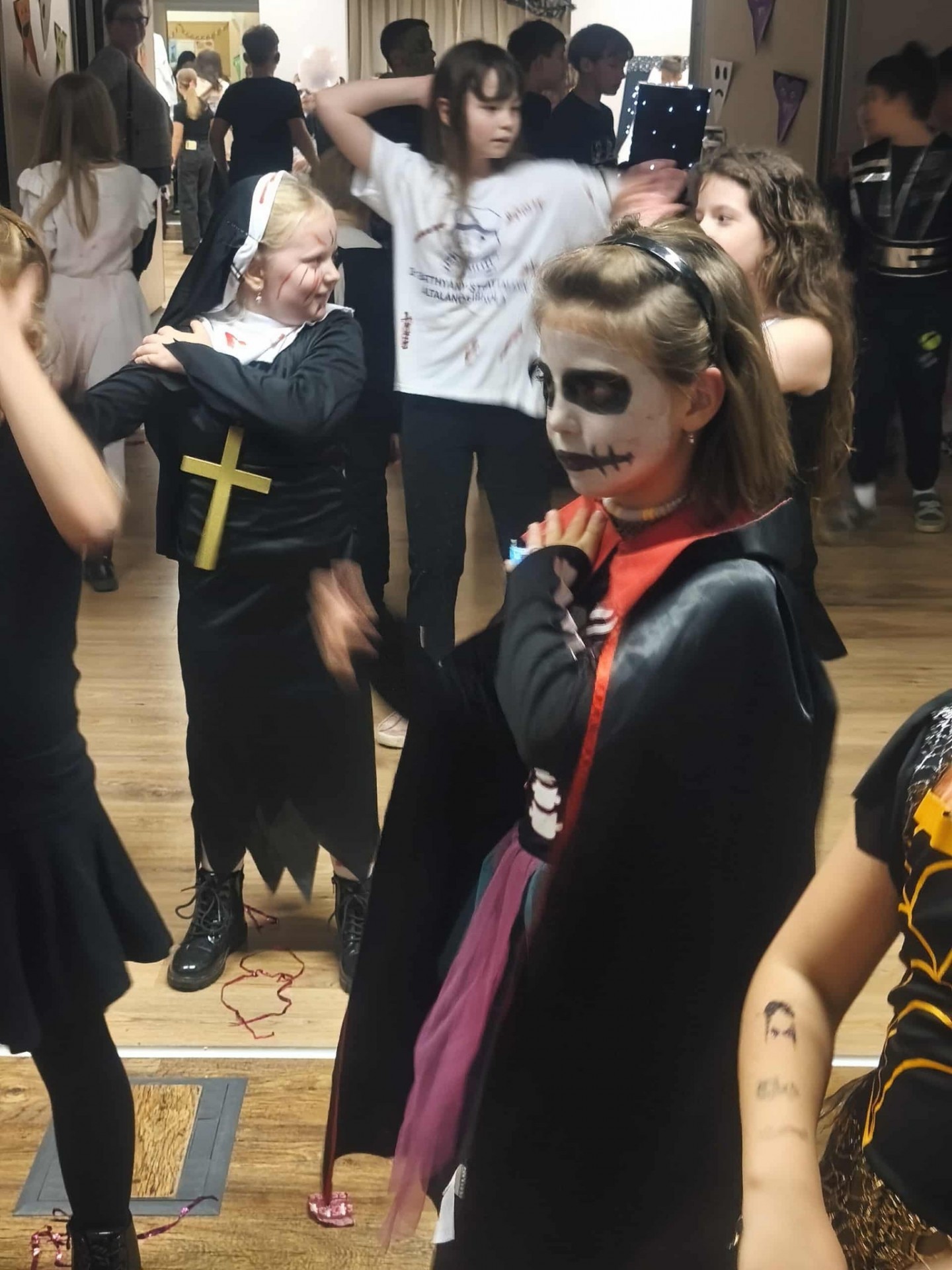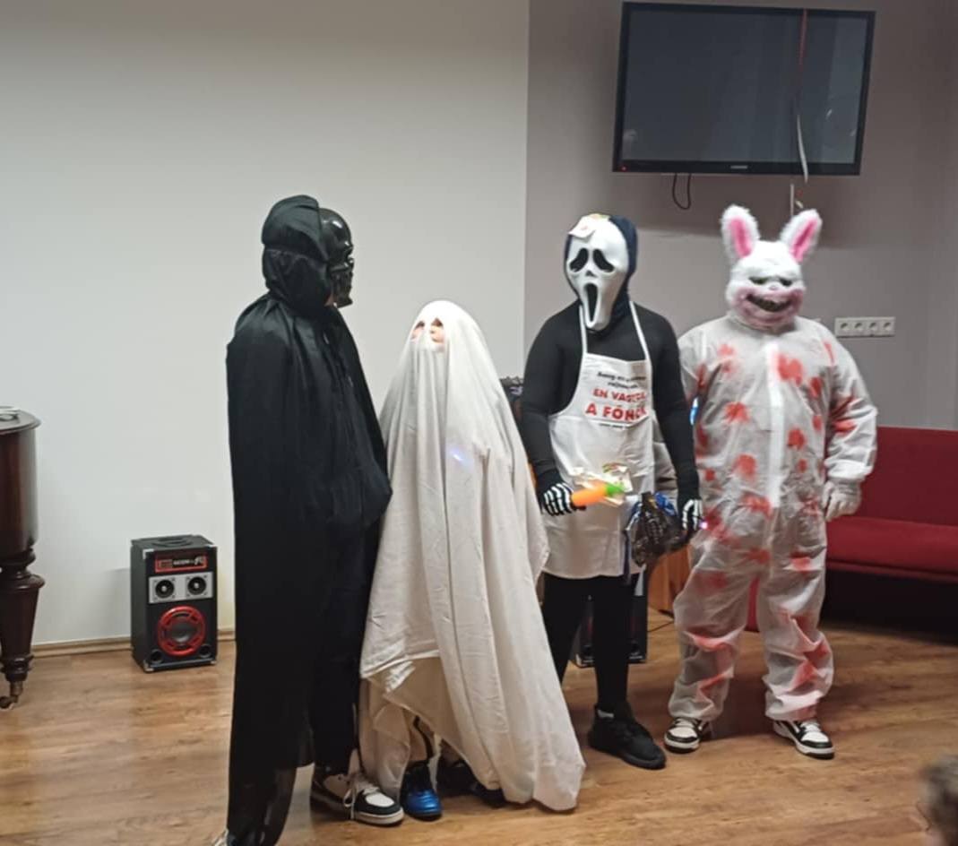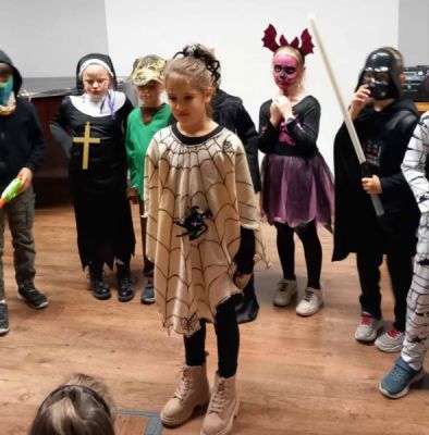 Az idei tanévben az őszi szünet miatt Halloween After party-t tartottunk. A korábbi évek tapasztalataiból kiindulva az IKSZT épületében rendeztük meg, ezt a hátborzongató programot. Különlegesebbnél különlegesebb jelmezekben érkeztek a gyerekek. Volt halott menyasszony, venom, vérnyúl, póklány, szellem, vámpír és még sorolhatnánk. Az est leple alatt szellemekre, pókokra és fekete macskákra is vadásztunk. Miután elűztük a gonosz szellemeket, jöhetett a tánc, és a mulatság. A tánctér felett cukorfelhők gyülekeztek, de ezen az akadályon is bátran átküzdötték magukat bátor és borzongató diákjaink.