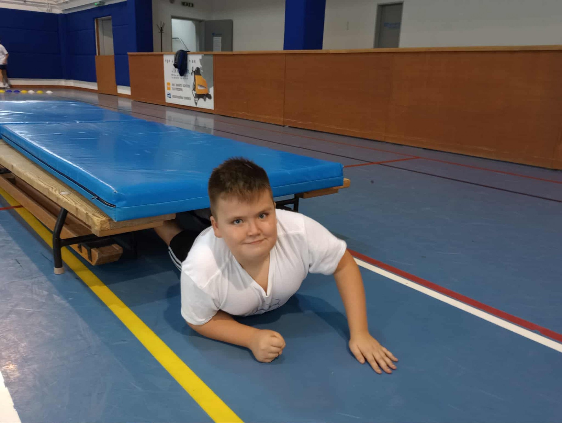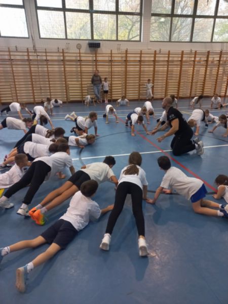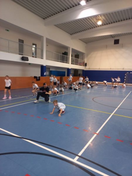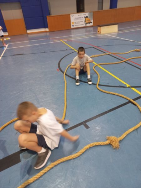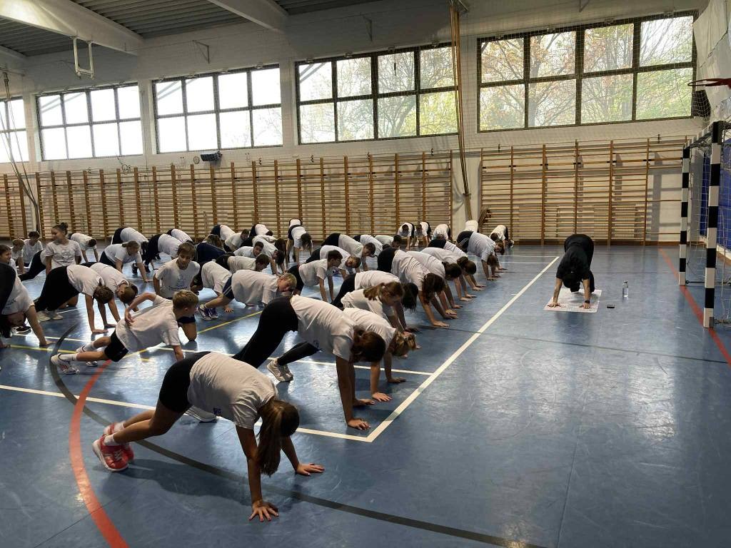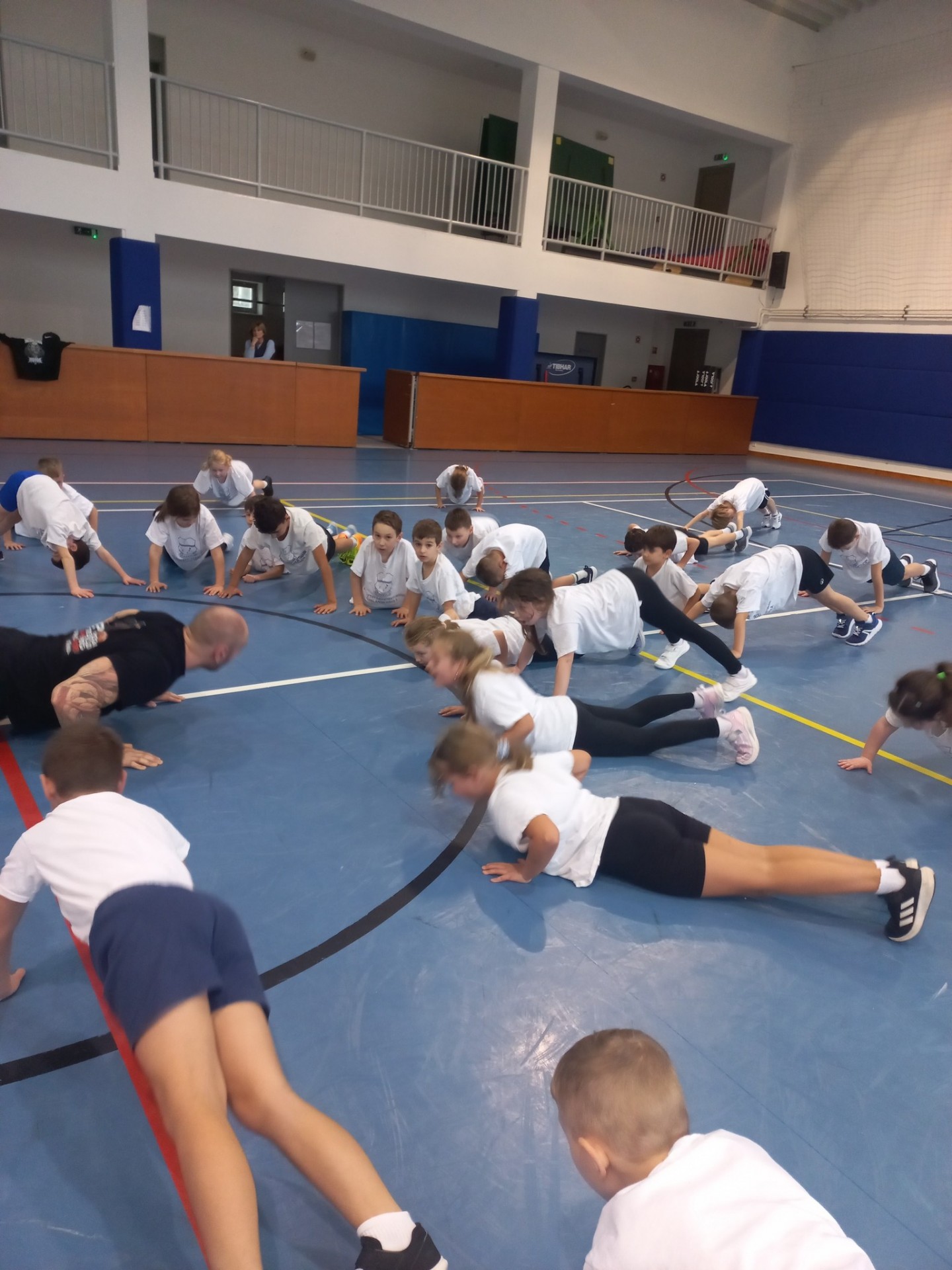 A kedd délután a kisebbeknek újabb sportos kihívást jelentett: Szücs Róbert "Rocky" vezetésével erősíthették izmaikat a tornacsarnokban.
