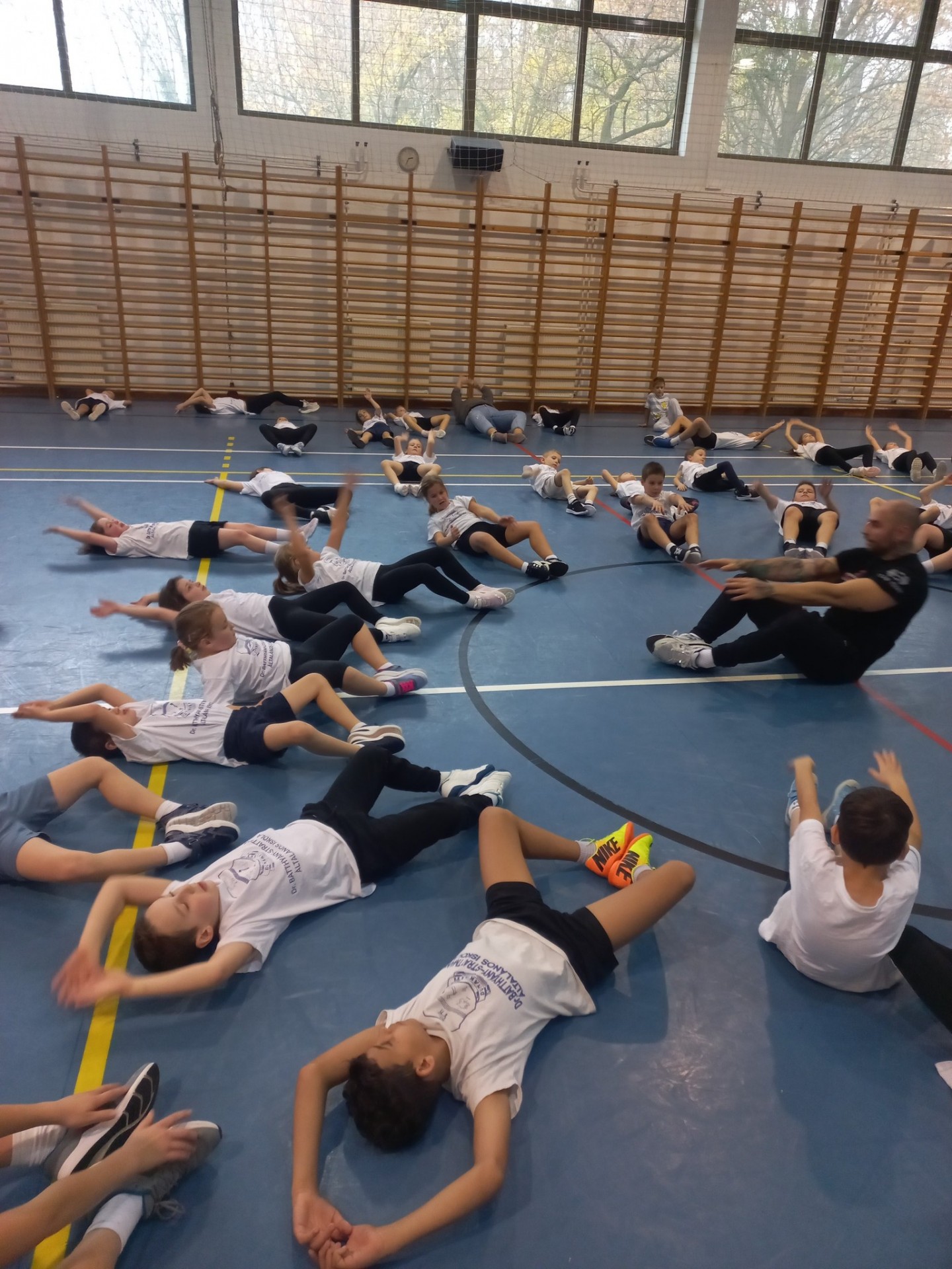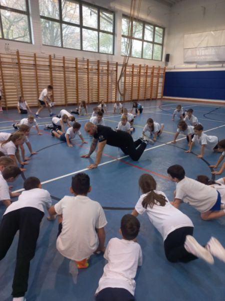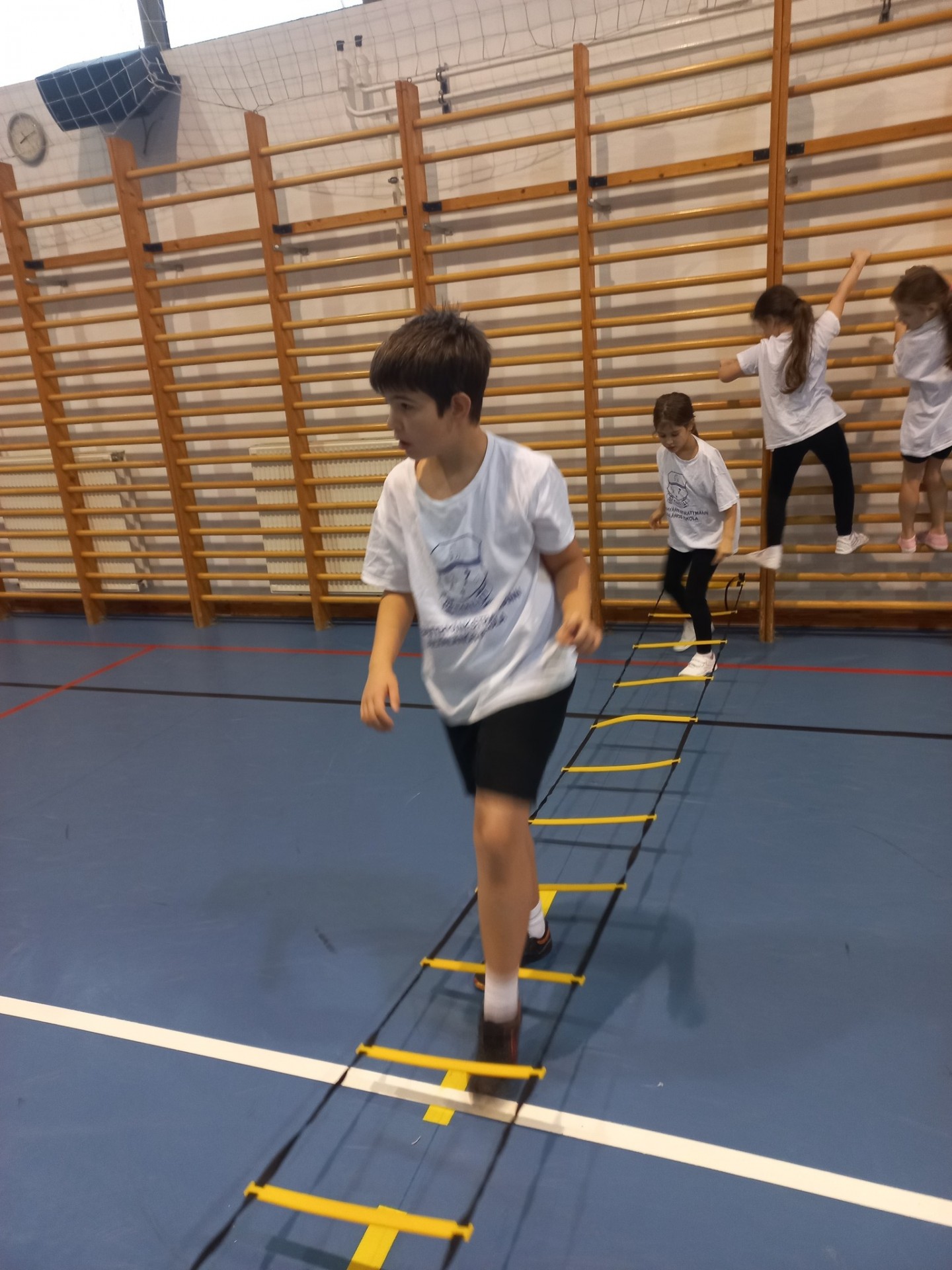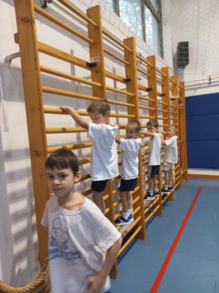 A kedd délután a kisebbeknek újabb sportos kihívást jelentett: Szücs Róbert "Rocky" vezetésével erősíthették izmaikat a tornacsarnokban.