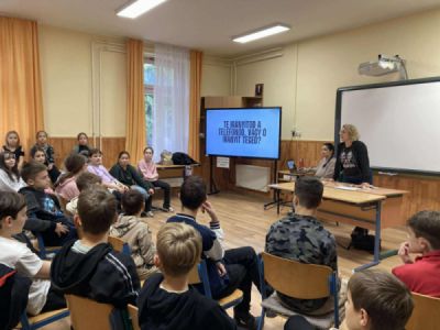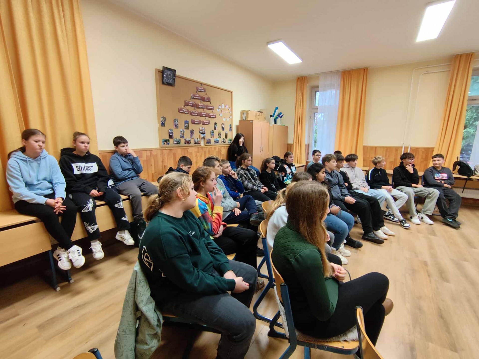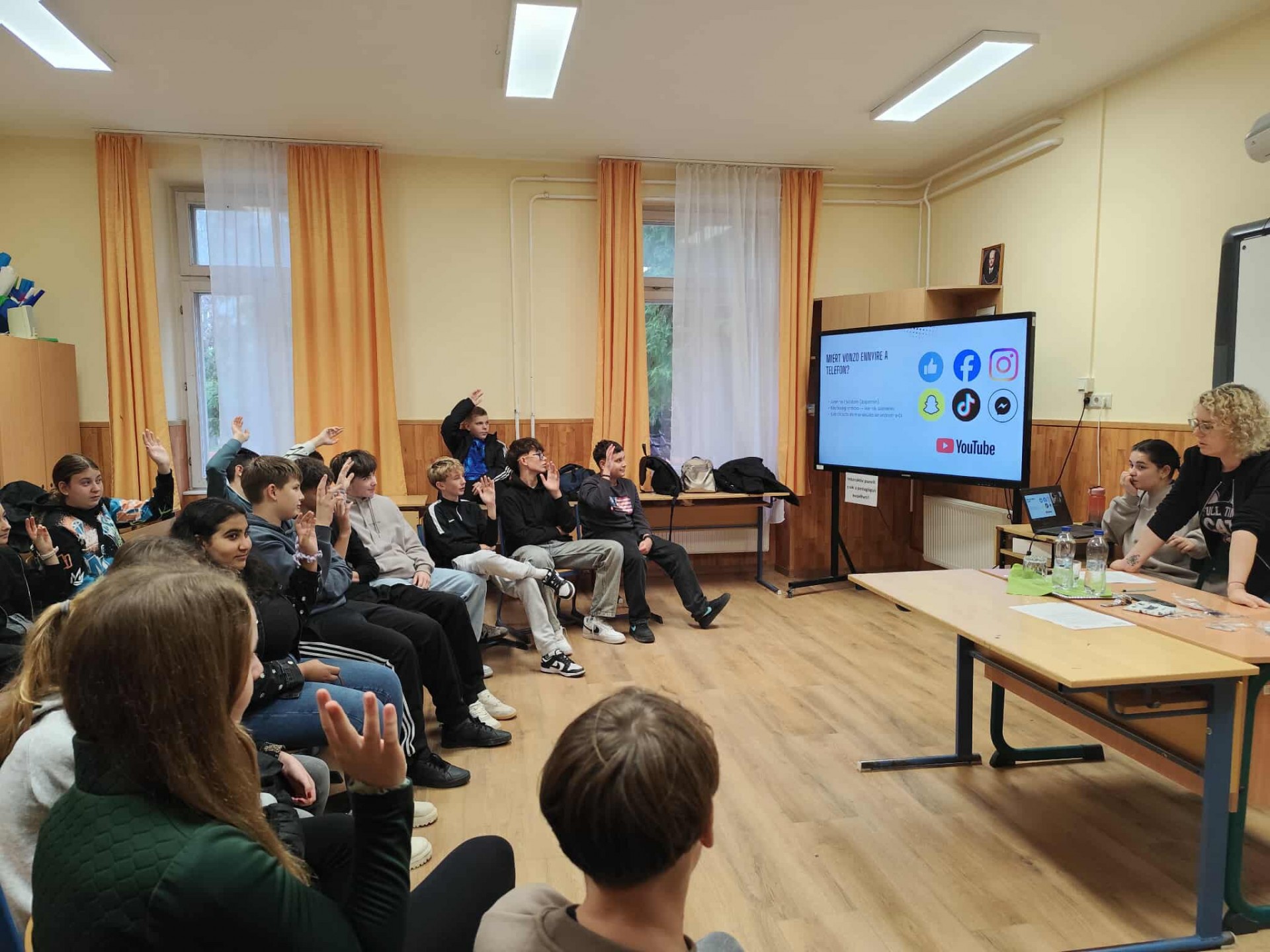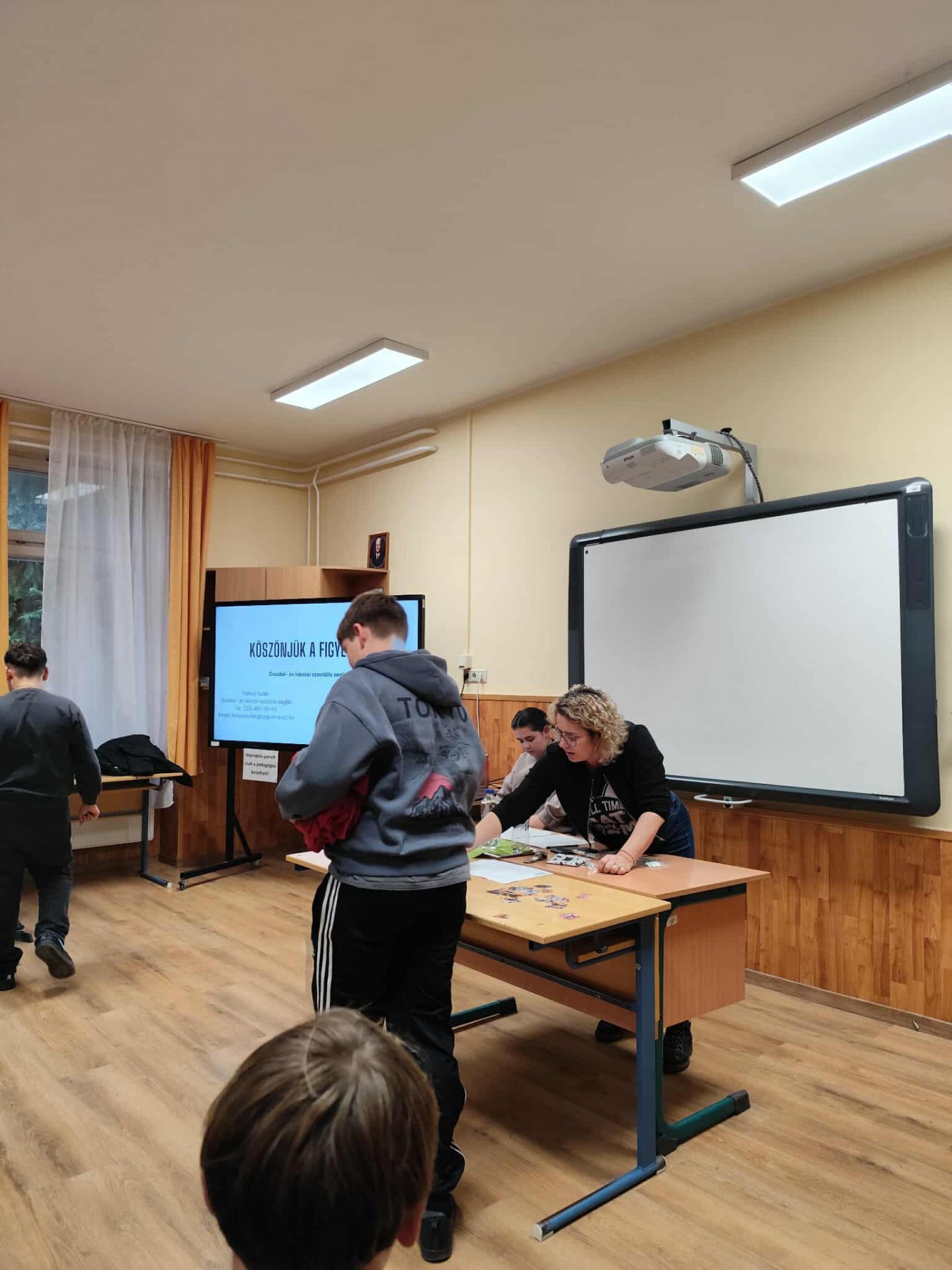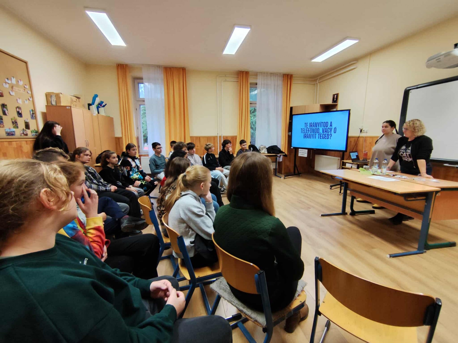 Míg a kicsik sportoltak, a felsősök a Telefonfüggőséggel kapcsolatos interaktív előadáson vehettek részt, melyet Farkas Eszter szociálpedagógus tartott.