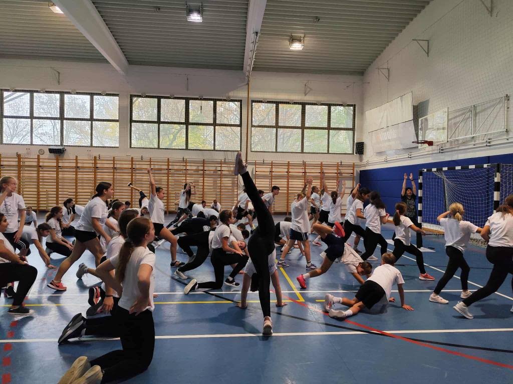 "Táncol a suli", azaz pénteki délelőttünkön vidám zene hangja töltötte be a tornacsarnokot, ahol minden osztály részt vett egy táncos órán.