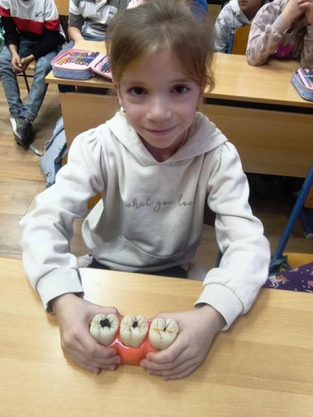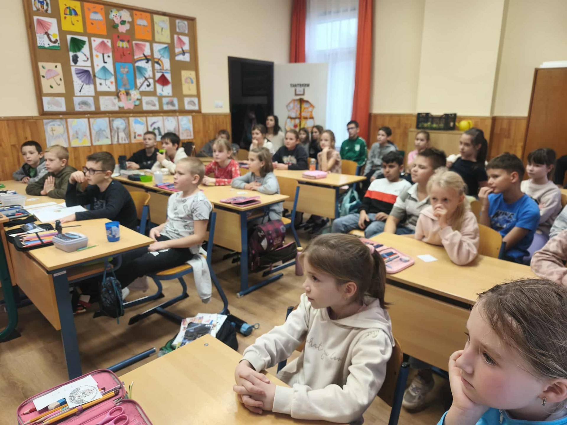 Fogápolási foglalkozáson vettek részt alsósaink szerdán. Hegyi Virág dentálhigiénikus érdekes kísérletekkel mutatta meg a gyerekeknek, miért van szükség arra, hogy megfelelően ápolják fogaikat.