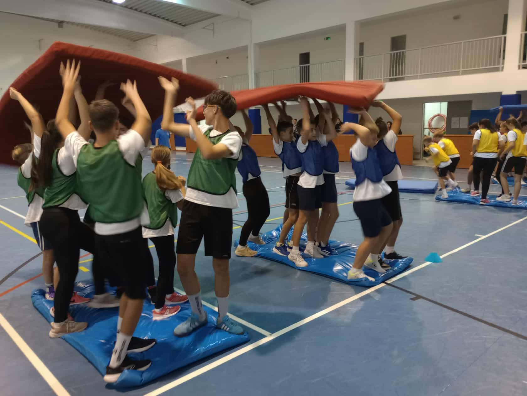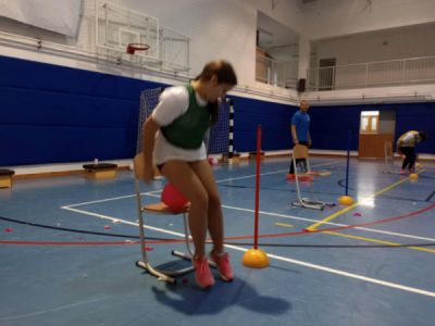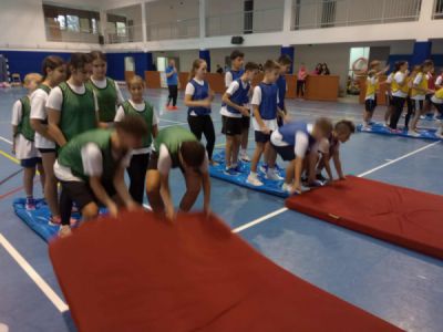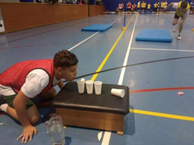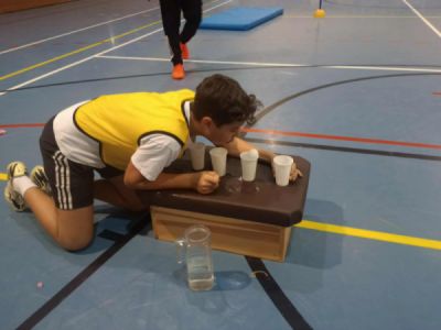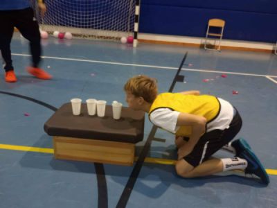 Délután a felsősök négy csapata küzdött egymással a tornacsarnokban, ahol vicces , de cseppet sem egyszerű feladatokat kellett teljesíteniük.