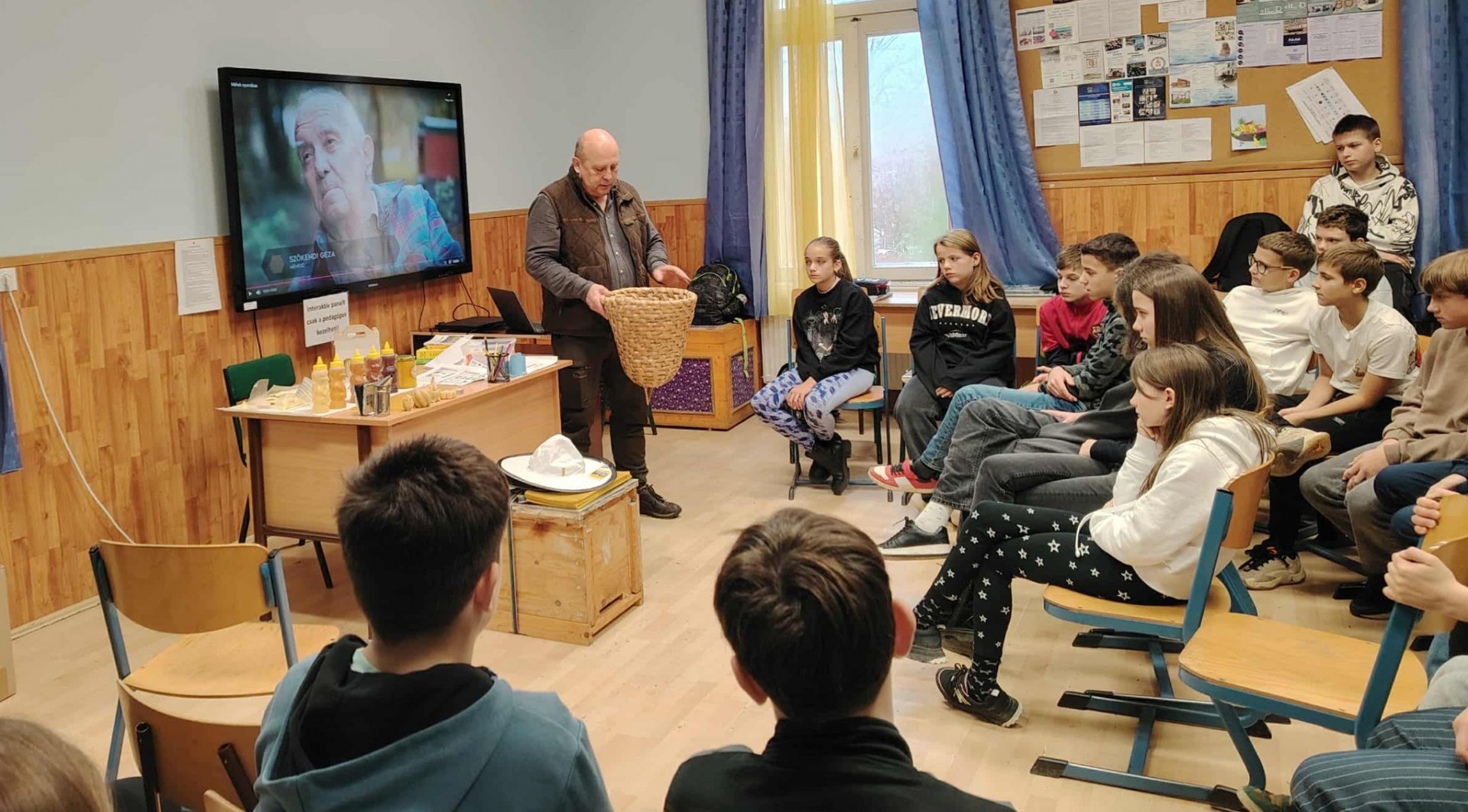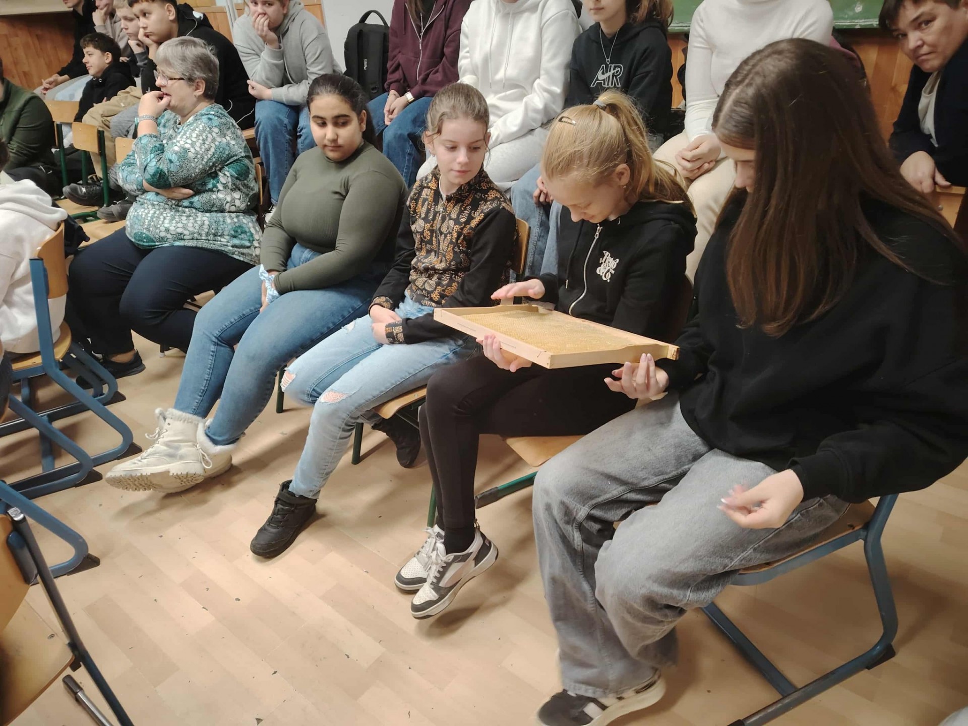 A méhek, és a méz nyomában jártunk ma délelőtt Svedics Tibor méhész által. Az előadás végén természetesen a kóstolás sem maradhatott el.