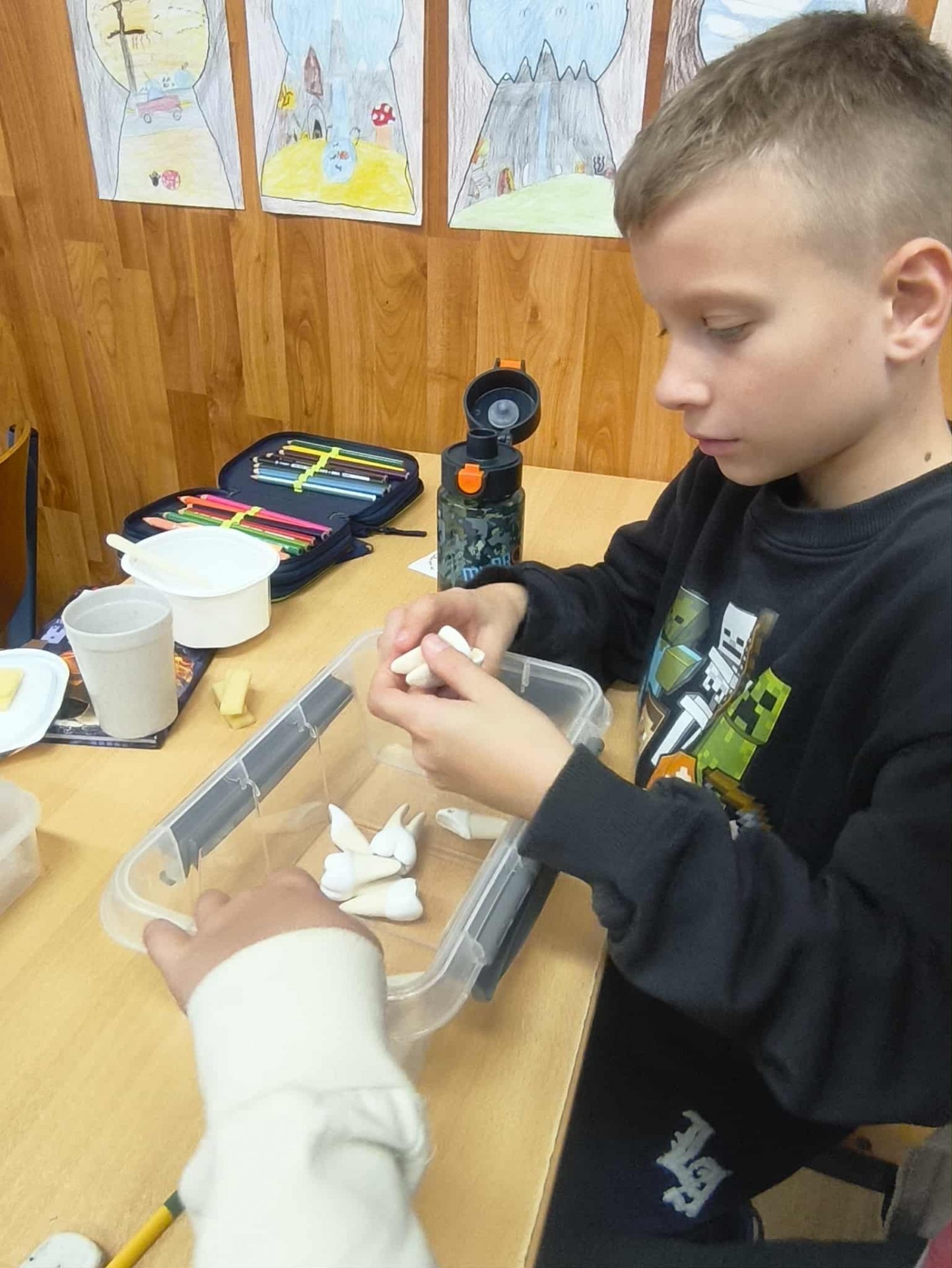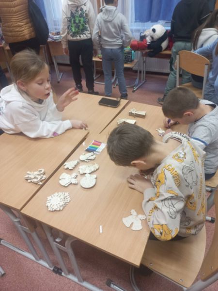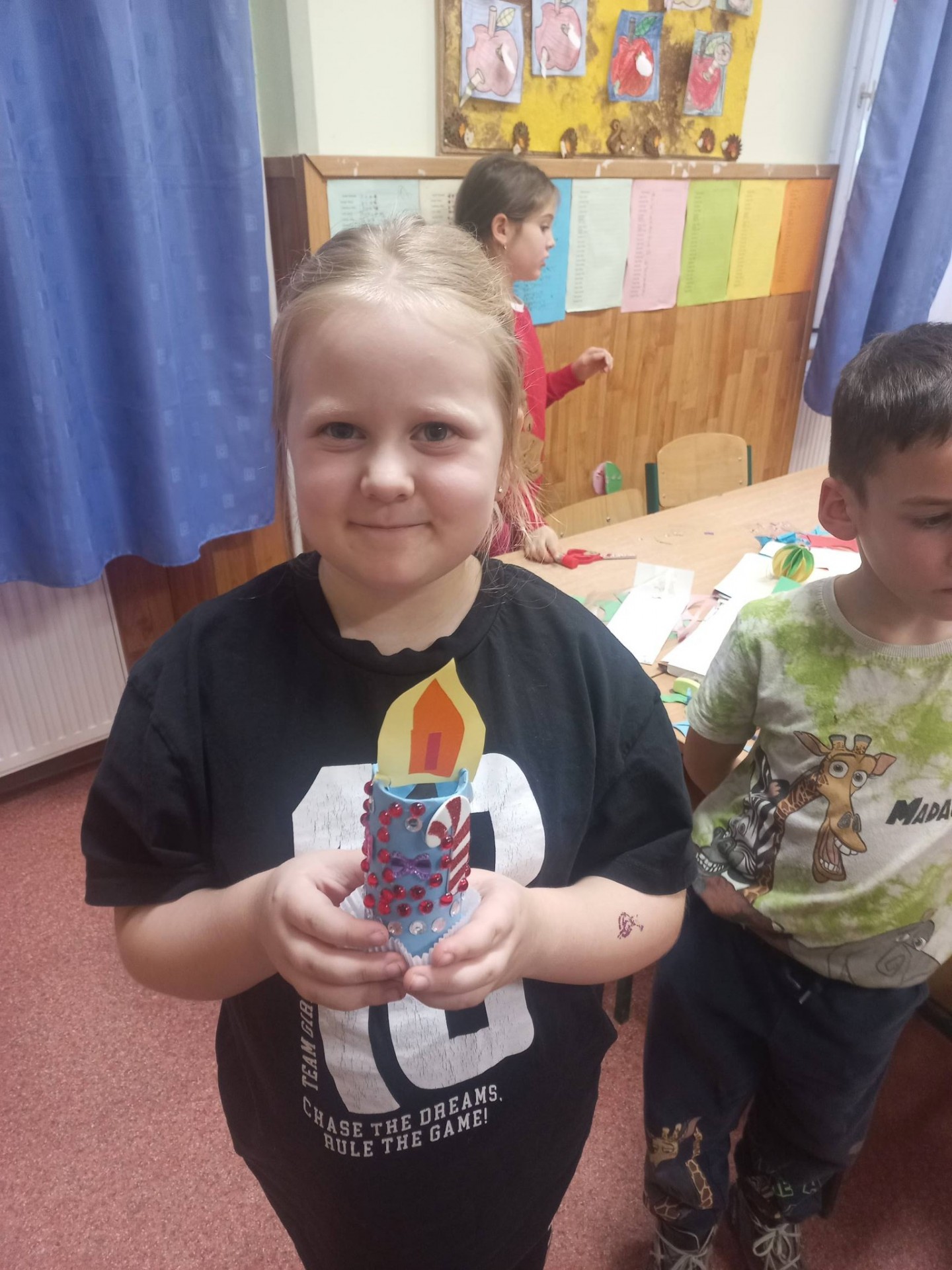 Adventi készülődés péntek délután. Az egyik teremben a gyerekek a pedagógusok segítségével készítették a szebbnél szebb gyertyákat, karácsonyfadíszeket, és koszorúkat, míg a másik teremben a Szülői Munkaközösség csapata hozott festésre váró karácsonyi figurákat,és készült manósapka is.
