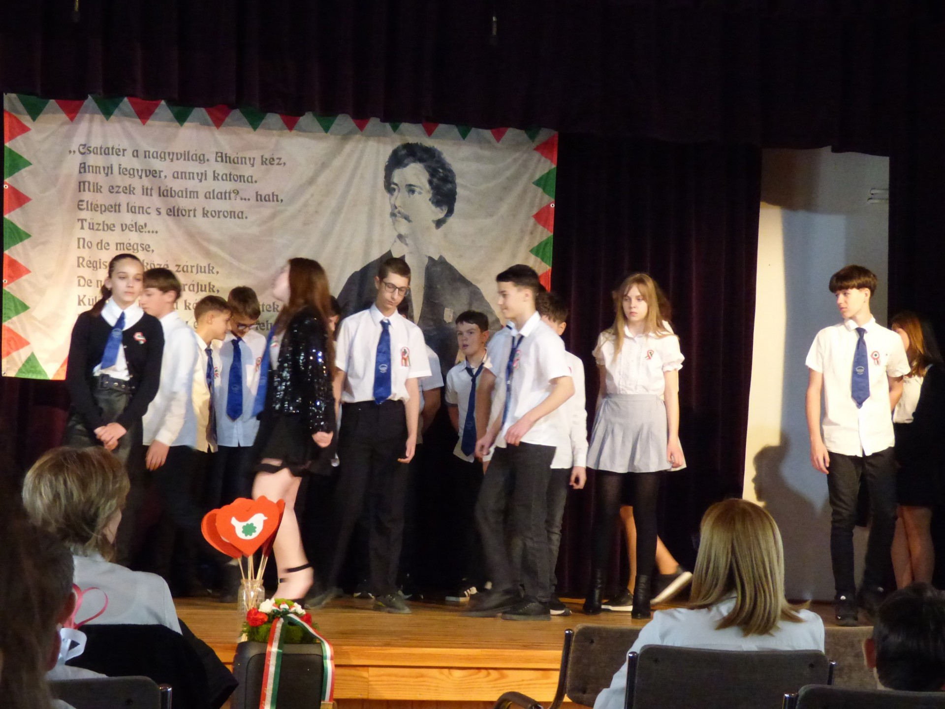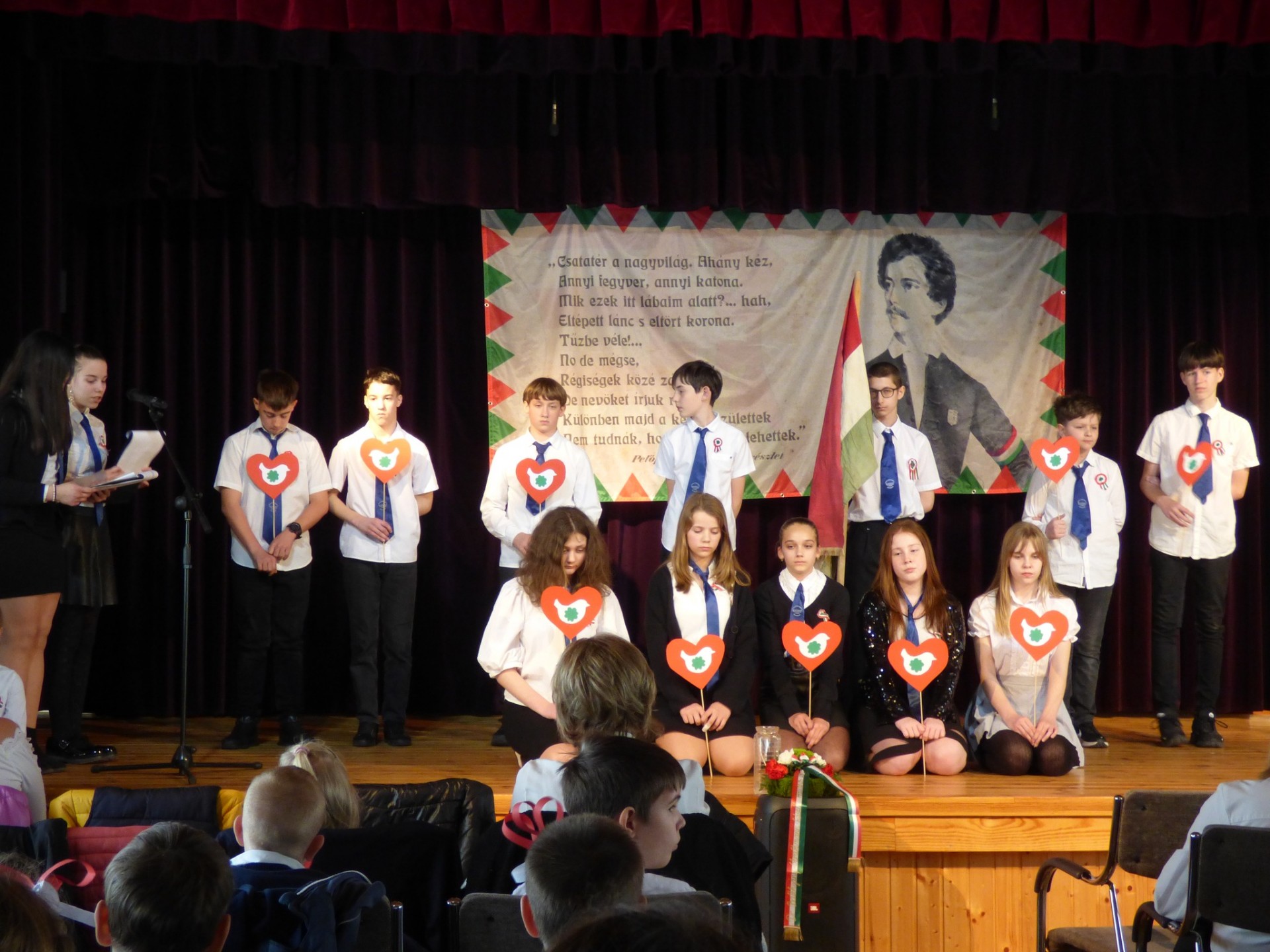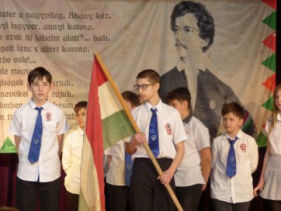 Méltón emlékeztünk az 1848-as forradalom és szabadságharc hőseire pénteki ünnepélyünkön. Stergericsné Bertalan Eszter igazgató asszony beszéde után a hatodikasok adták elő műsorukat. Felkészítő pedagógusuk Szalai Zsolt volt, az énekkart Arany Eszter vezényelte.