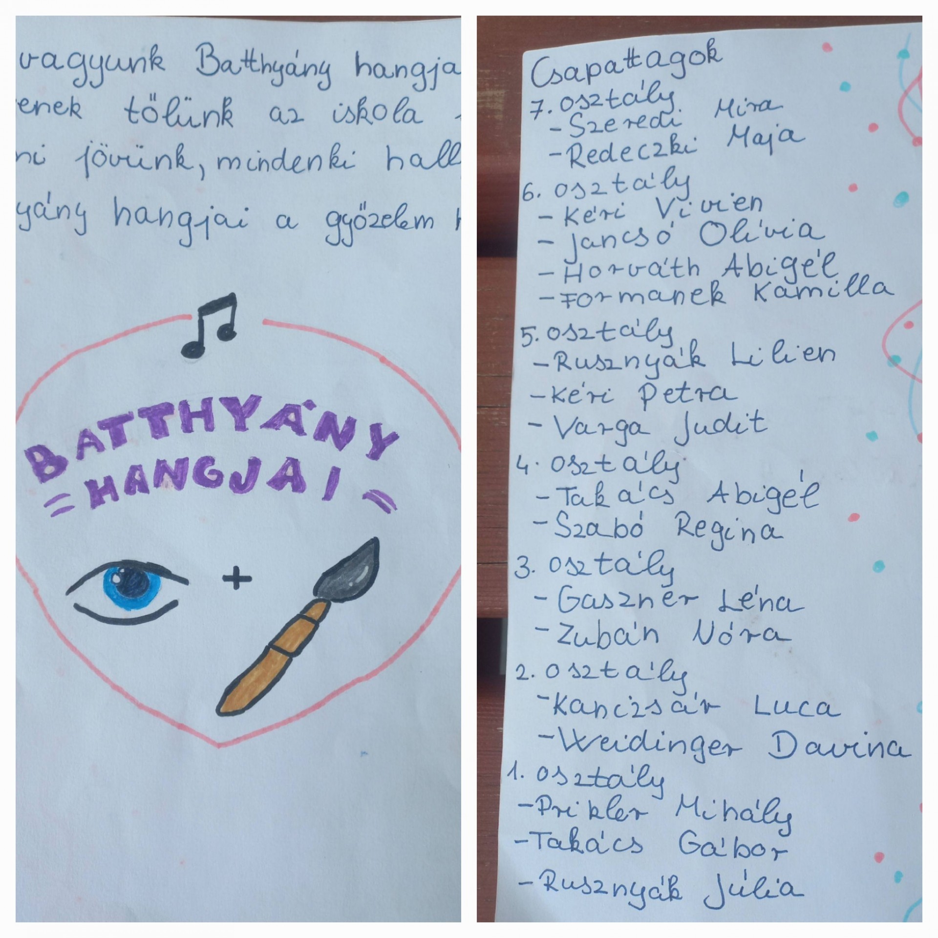 A 7. osztály képviselői: