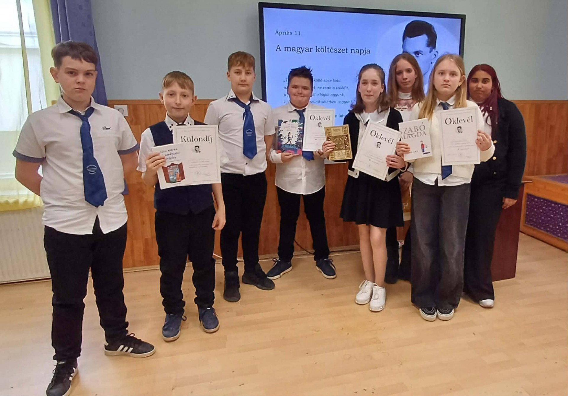 A magyar költészet napját a felsősök is az alkalomhoz illően ünnepelték. A szavalóversenyen hallhattunk többek között Petőfi Sándor, Muhi János, Lackfi János írta verseket.