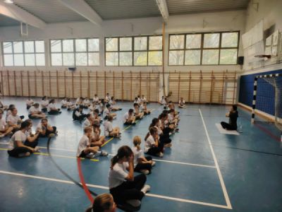 Kedden délelőtt Zsigmond Fanni, a Pleasuredome Fitness Club jógaoktatója színesítette óráival minden osztályunk napját.