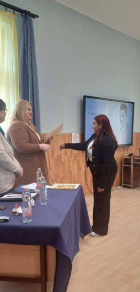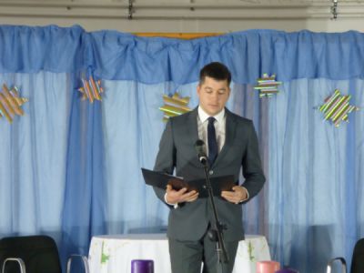 Ünnepi beszédet Stergericsné Bertalan Eszter igazgatóasszony mondott,melyben köszöntötte, és emlékplakettet adott át pedagógiai munkásságáért Réder Tamásnak.