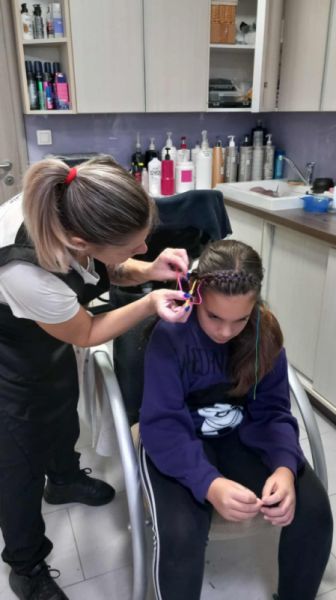 Következő állomásunk a Claudia Fodrászat volt. A gyerekek megismerkedhettek a fodrászmesterség alapjaival, kellékeivel, s a gyakorlatban is kipróbàlhatták a fonást, hajfestést.