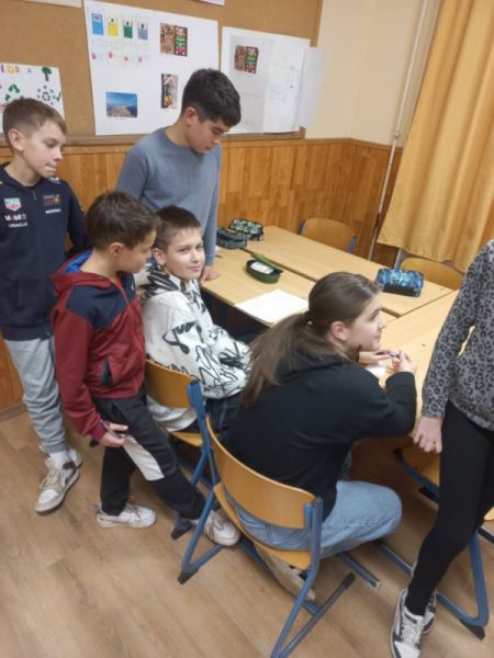 Mikus Sándorné beszámolója: Biológia órán zöld moszatot és burgonyát vizsgáltunk. Megtudtuk miben más egy fotoszintetizáló és egy keményítőt raktározó sejt. Elsajátítottuk a mikroszkóp helyes használatát. Kémia órán sósavat öntöttünk fémreszelékekre és megfigyeltük a Gáz fejlődést. Néhány tanulónak sikerült demonstrálnia a durranást a gázok meggyújtásakor. Majd kőzeteken figyeltük meg, hogy égést tápláló vagy elfolytó gáz képződik e a sósav hatására. Végül lúgos, savas és semleges folyadékok reakciójàt vizsgálgattuk különböző indikátorok segítségével. Hasznos nap volt.