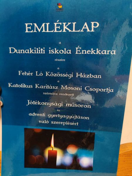 Iskolánk énekkara pénteken a Fehér Ló Közösségi Házban szerepelt a Katolikus Karitász Jótékonysági műsorán.