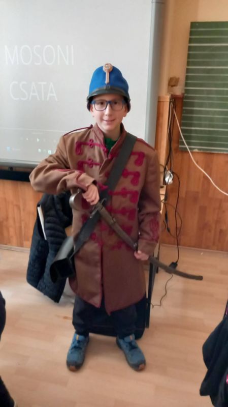 A 4. osztályos tanulók a Hansági Múzeum múzeumpedagógusának - Martinschich Balázs - előadásán vehettek részt. Sok érdekességet hallottak az 1848-49-es forradalom és szabadságharc eseményeiről. Megismerhették a korabeli fegyvereket, s a huszárok felszerelését is.
